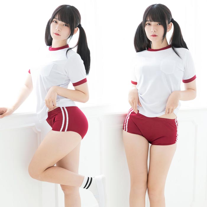 単品のブルマはウエストゴムで履きやすく、サイドのラインがポイント。
