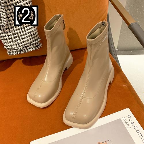 ショートブーツ レディース 歩きやすい おしゃれ チェルシーブーツ スクエア 新作 厚底 ヒール 黒 カーキ ベージュ