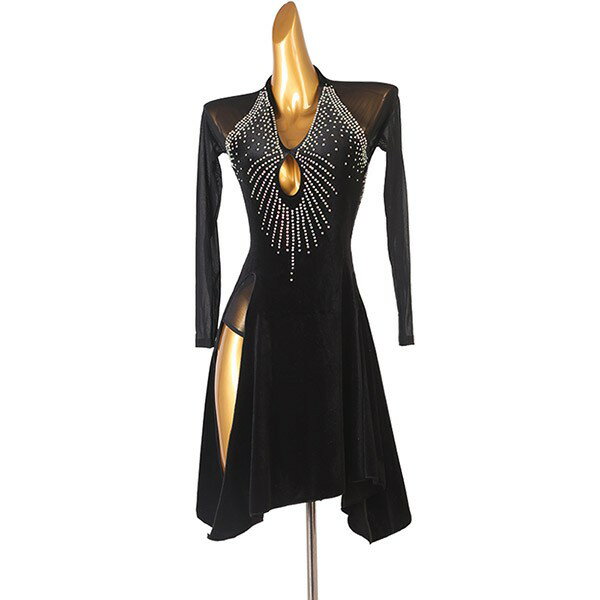 社交ダンス ラテンドレス ラテンダンス衣装 ワンピース ラテン衣装 練習服 チャチャチャ サルサ ルンバ 競技 レッスン着 ダンスウェア タンゴ セクシー ブラック 黒 S M L XL 2XLdb065s1s1l9